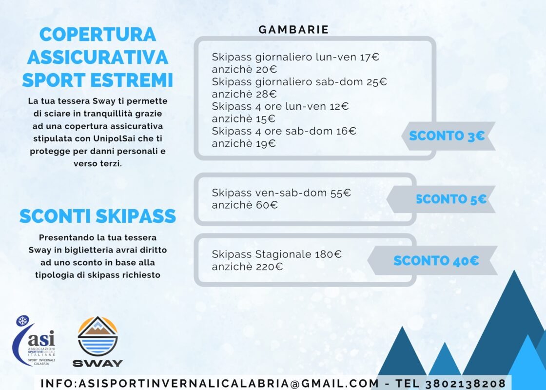 Se vuoi vivere l’emozione dello snowboard e del kitesurf in un ambiente accogliente e inclusivo, diventa un membro della Sway oggi stesso! Unisciti a noi e fai parte di una comunità appassionata di sport e di divertimento, dove l’amicizia e il supporto reciproco sono al centro di tutto!